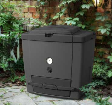 It has internal air ducts that take oxygen into the compost mass. This adjustable ventilation system promotes airflow for efficient breakdown of waste and a temperature gauge to monitor the internal temperature of the compost.